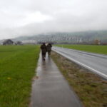 Seit gefühlten 10 Jahren hatten wir an unseren Märschen stets wohlwollende Wetterbedingungen. Inwil 2016 aber unterbricht diese ungeschriebene Regel: eine Regenfront liess uns schon bei der Anfahrt eine allfällige motorisierte Verschiebung in Betracht ziehen. Nach dem traditionellen Melden aber war der Marschgeist der RK zurück und die 5 Marschierer trotzten der Nässe! Von Inwil führte uns der Weg der Hauptstrasse entlang nach Gisikon, wo im Restaurant Tell ein Bier uns erfreute. Danach öffnete Petrus seine Schleusen noch stärker und der Abschnitt nach Buchrain gehörte definitiv zur Kategorie „Scheisswetter“. Die elektronische Karte unseres Navigators Wufi drohte im Regen ihren Geist aufzugeben, aber auch dies liess uns nicht vom geplanten Weg abkommen. In Buchrain folgte die nächste unangenehme Überraschung: der Kontrollposten war nicht etwa in einer gemütlichen Beiz angelegt, nein, ein Regenschirm auf offenem Feld musste genügen! Ein Stempel und ein Stempelkissen an einer Schnur aufgehängt zeugten vom Zerfall des Luz DM! Dieser unbemannte Posten ist Beweis, dass freiwillige Helfer an solchen Anlässen immer schwieriger zu finden sind!
